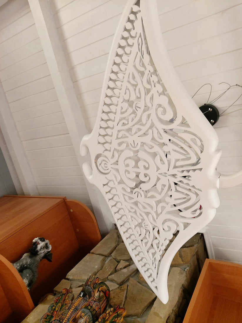 - Handcrafted Unique Wooden Manta Ray Ceiling Chandelier: LED Wall Lamp in Surf Style This innovative LED wall lamp merges surf style with modern design, featuring a wooden manta ray silhouette. It's a stylish and functional piece that captures the essence of the ocean and surfing culture.