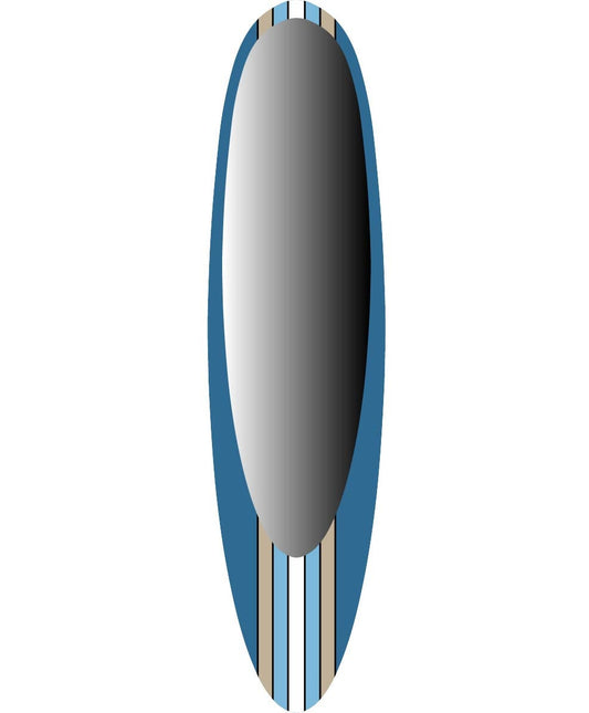 Full Body Oval Mirror in Blue Frame with White-Brown Stripes as Surfing Inspired Decor