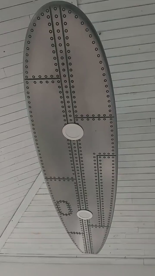 Aluminum Ceiling Chandelier in the Shape of a Surfboard - Covered with Liquid Aluminum