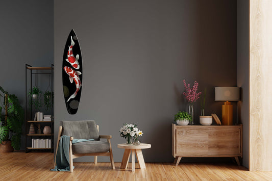 Decorative Surfboard Wall Artwork with Fish Pattern