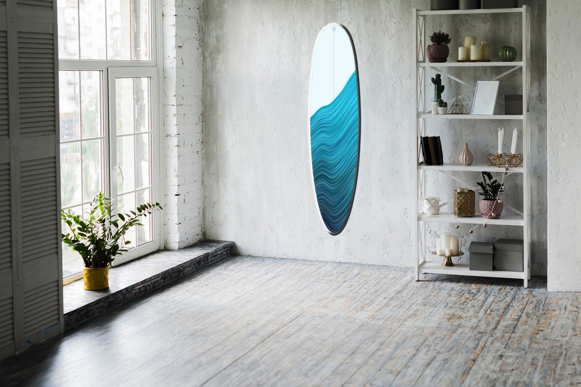 50' Decorative Surfboard Wall Hanging with Blue Ocean Wave Pattern