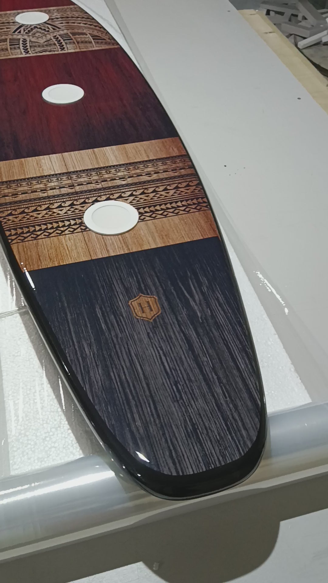 Ceiling Chandelier in the Shape of a Surfboard with a Maori Pattern