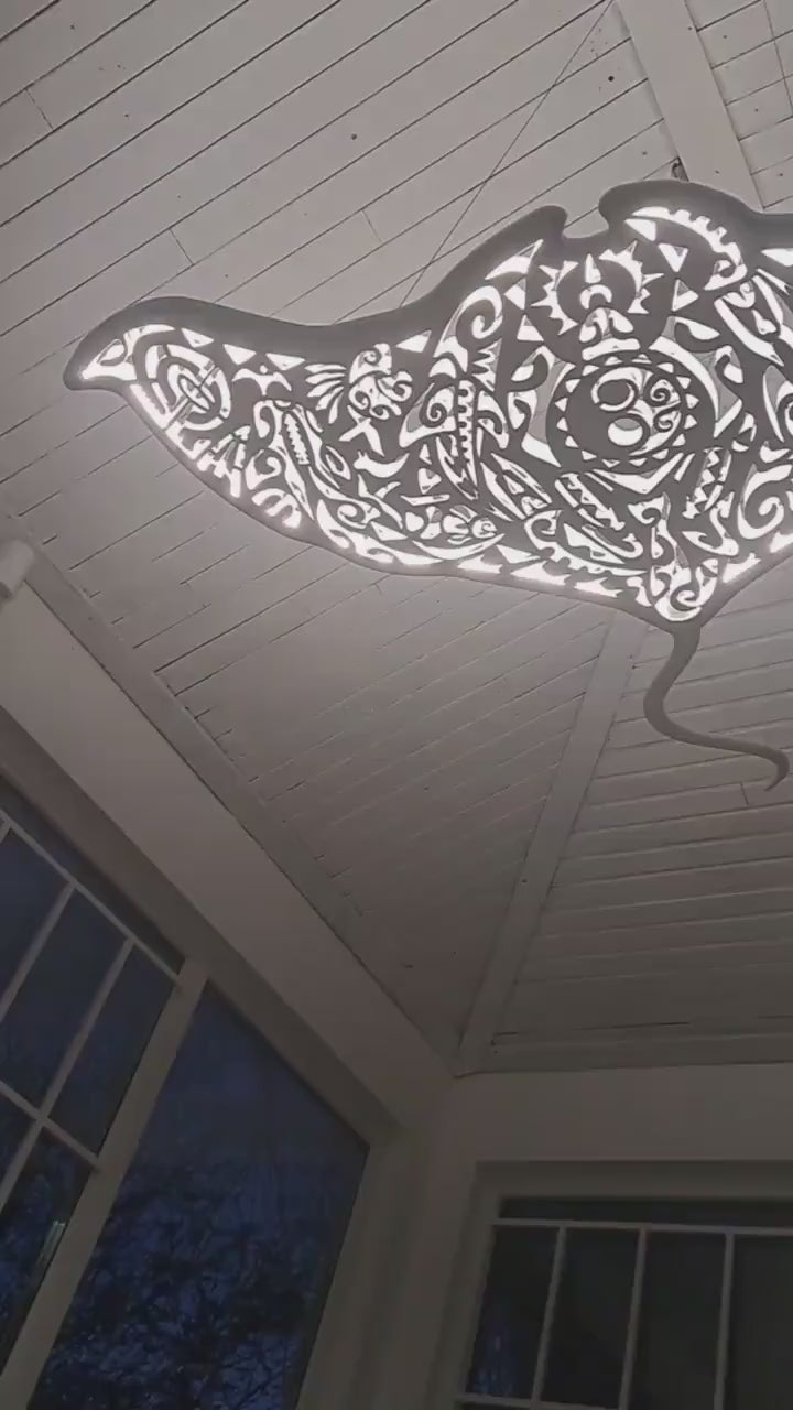 Transform your space with our ceiling-mounted manta ray light fixture. This unique and graceful piece will be a beautiful addition to your home or office. Purchase now and immerse yourself in a world of elegance and style