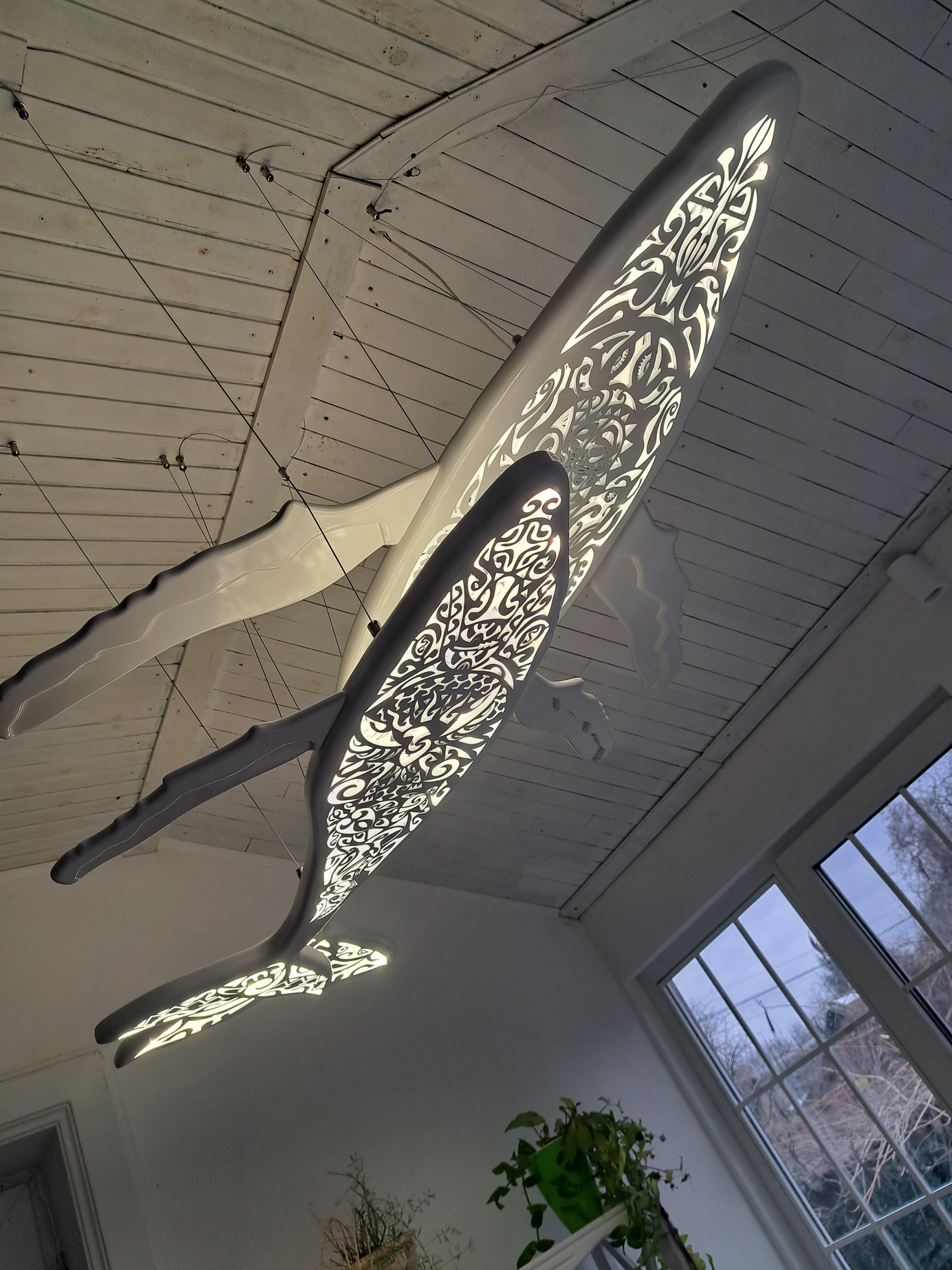 Handcrafted Whale and baby whale Ceiling Chandelier Description