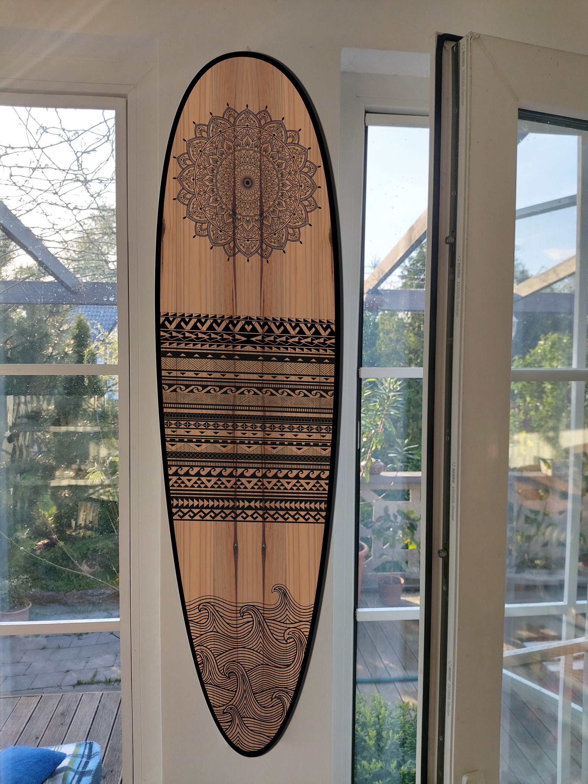Discover our exquisite collection of handmade Surfboard Wall Art pieces. Crafted with love and creativity, each board is a unique masterpiece that reflects the passion of its creators. With a blend of Polynesian style and meticulous craftsmanship, our surfboard art captures the essence of summer and brings back memories of conquering waves, enjoying the company of friends, and embracing the carefree beach lifestyle. Whether you're looking to adorn your indoor space or add a touch of coastal charm to your outdoor decor, these wood surfboard signs are the perfect choice. Ideal for children's rooms or any themed area, they can be easily mounted on a wall or displayed on a shelf or furniture. Rediscover the joy of summer all year round with our stunning surfboard wall art.