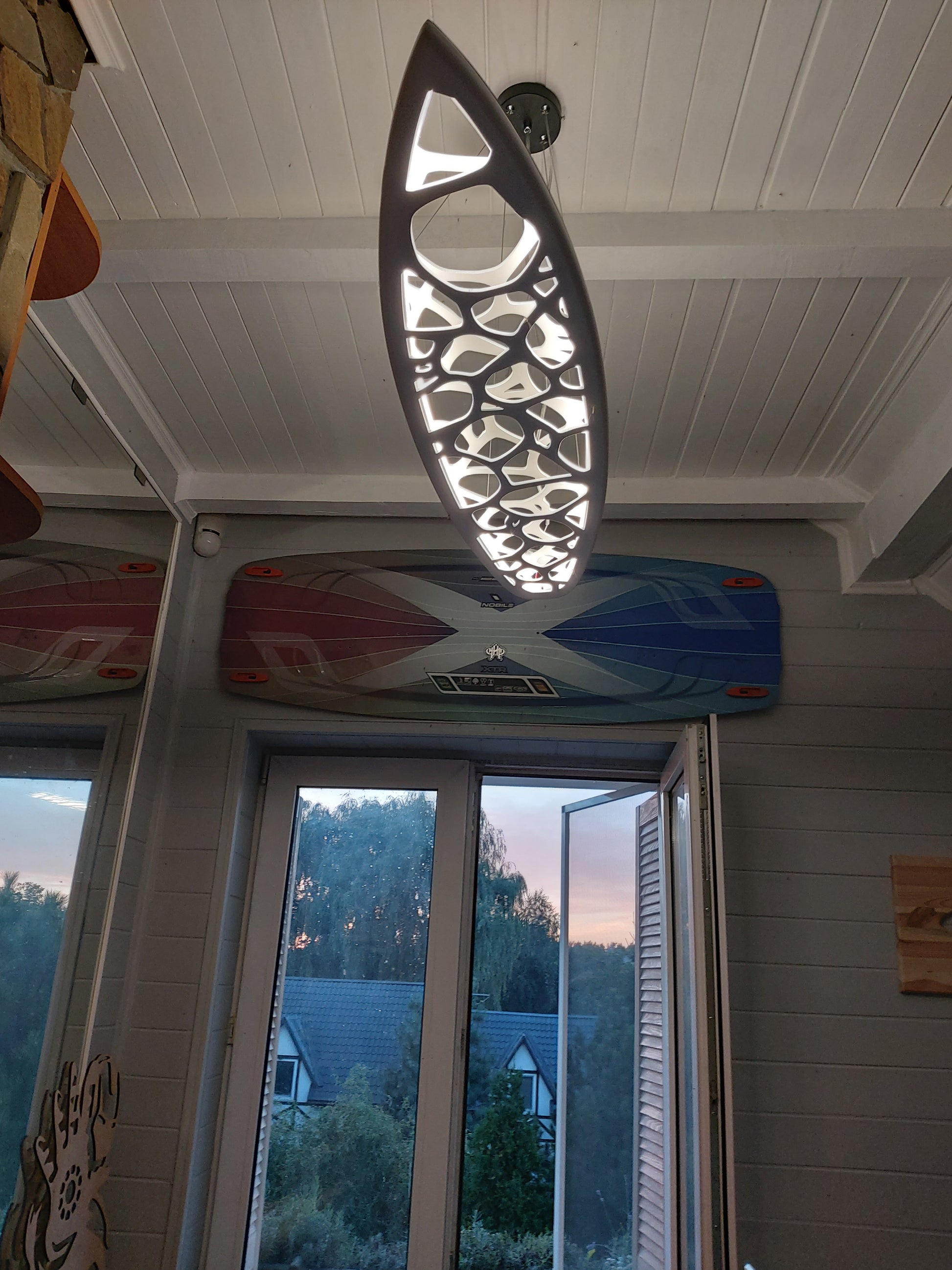 We offer a stylish and practical surfboard - Ceiling light. It will be not only a beautiful element of the interior. Every evening our board will remind you of your passion. It will be able to decorate any interior - a nursery, living room, office. It will attract attention everywhere.