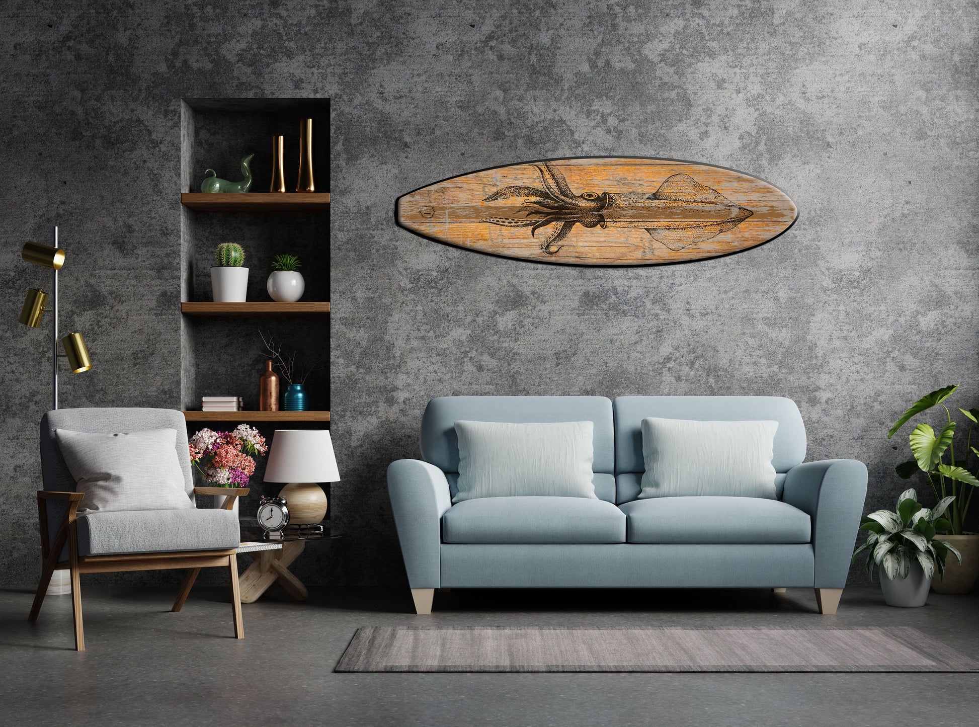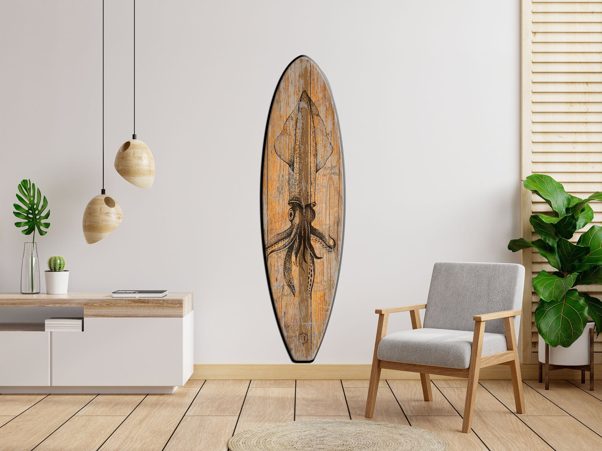 Squid Wall Art Surfboard - Surfers gift, Bar Decor, Beach Decor