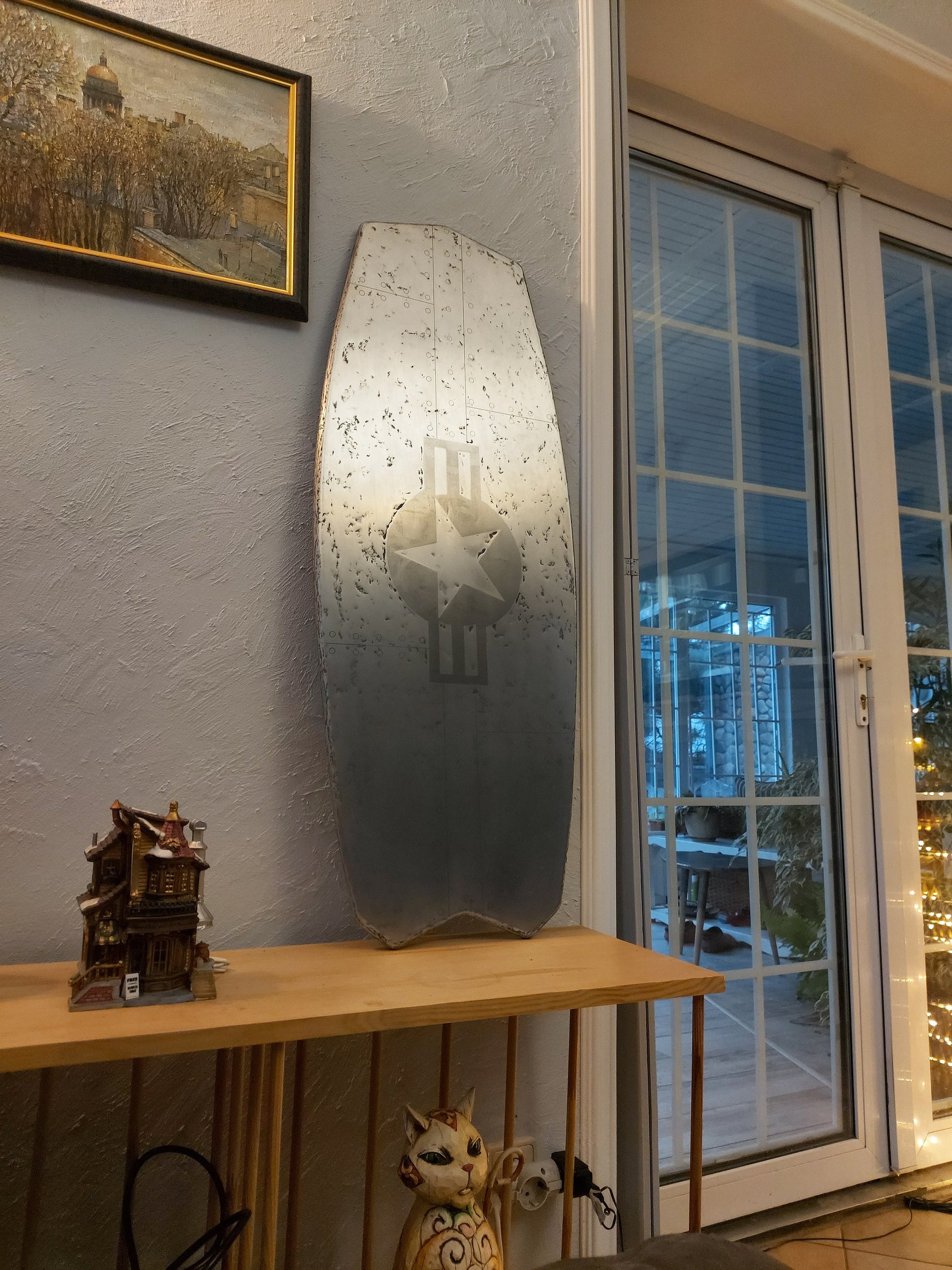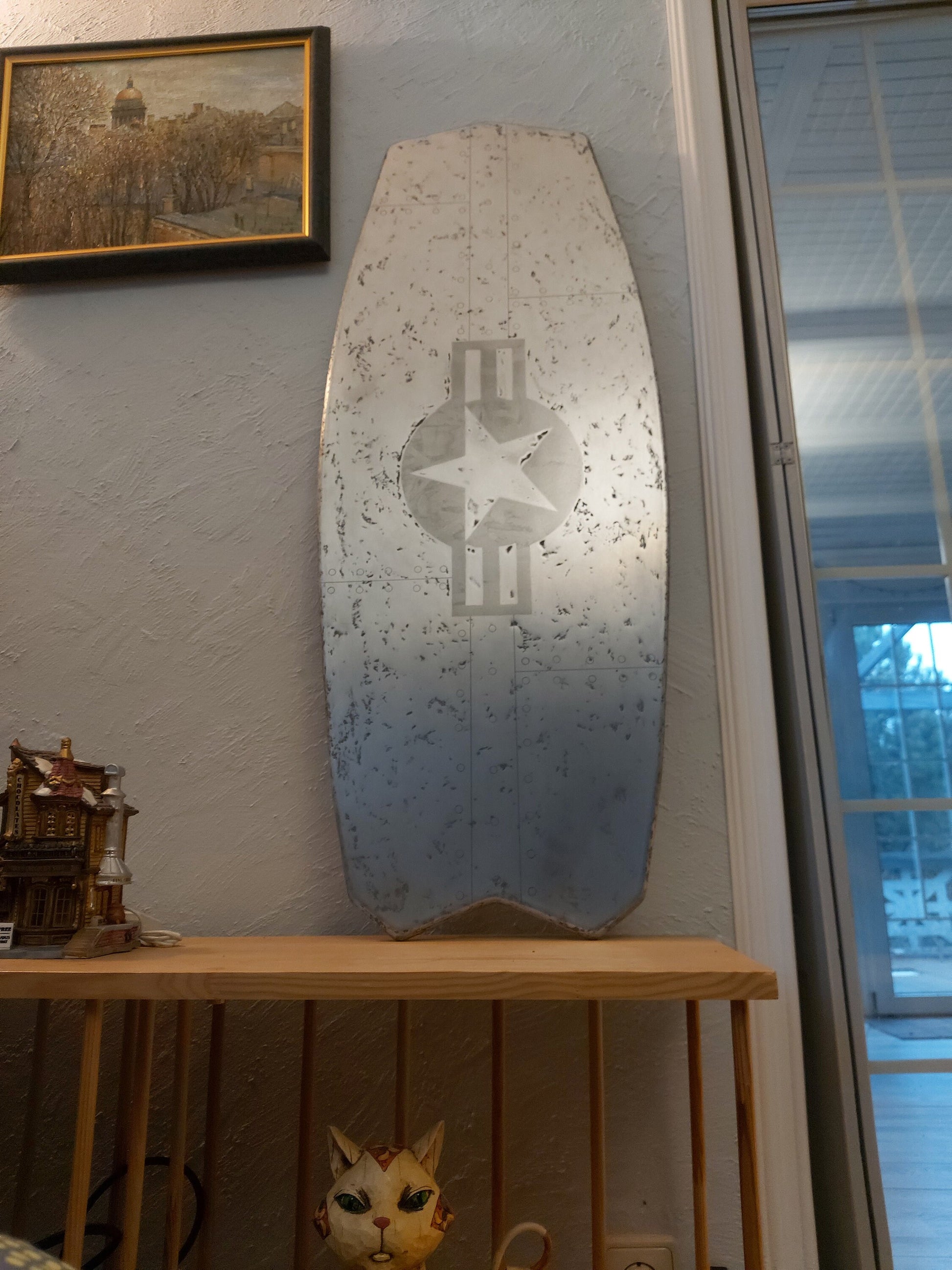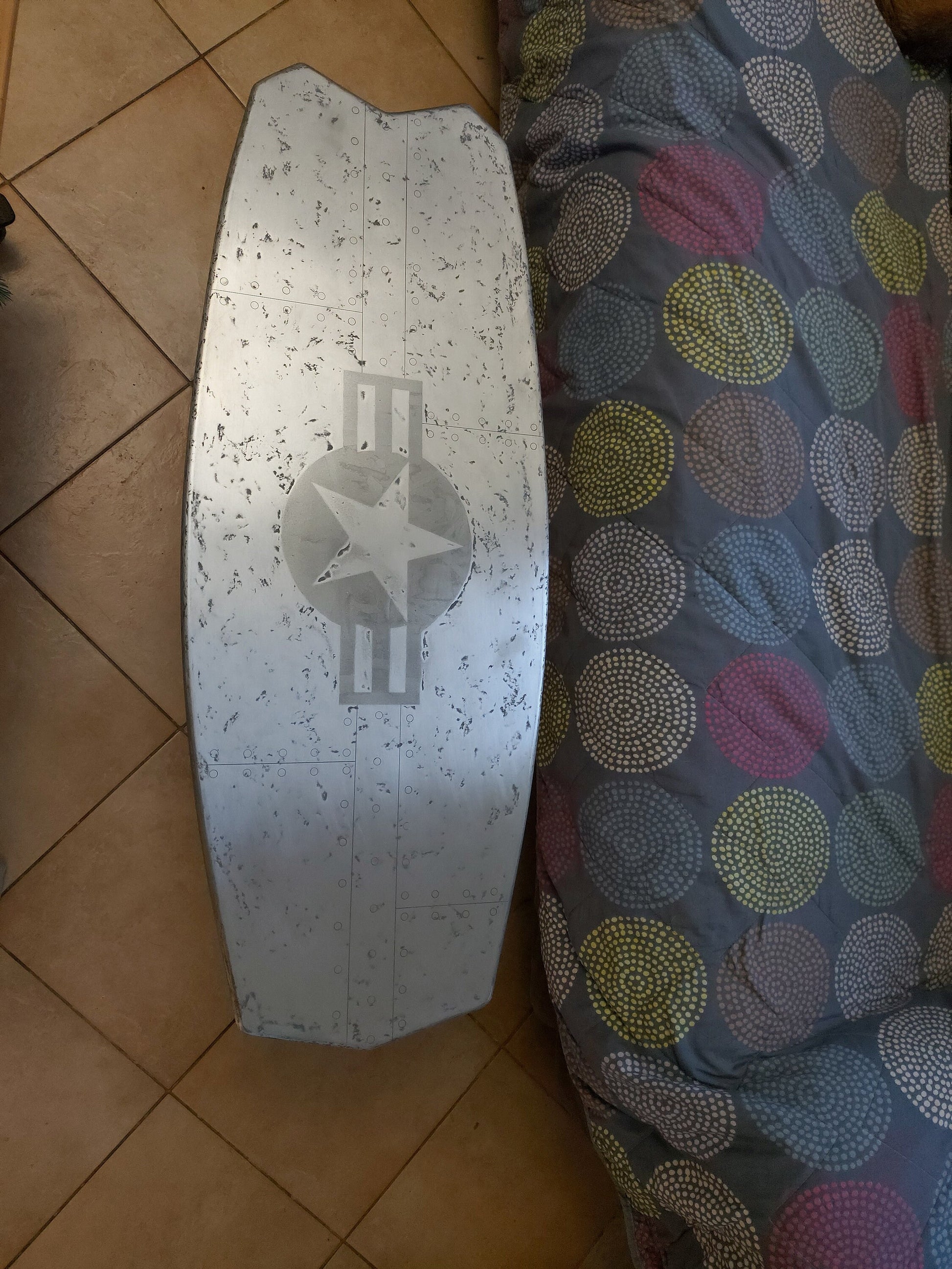 Steampunk-Inspired Kiteboard Table with Star and Rivets Pattern