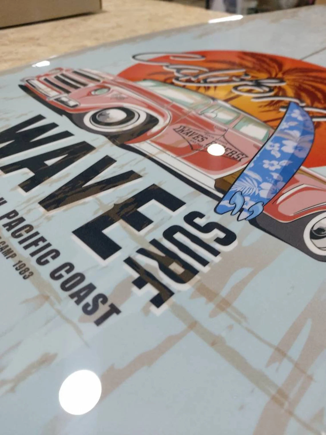 Surfboard Table, Surf wave, Surfing gift, Bar Decor, Beach Decor, Surfing Art Decor.