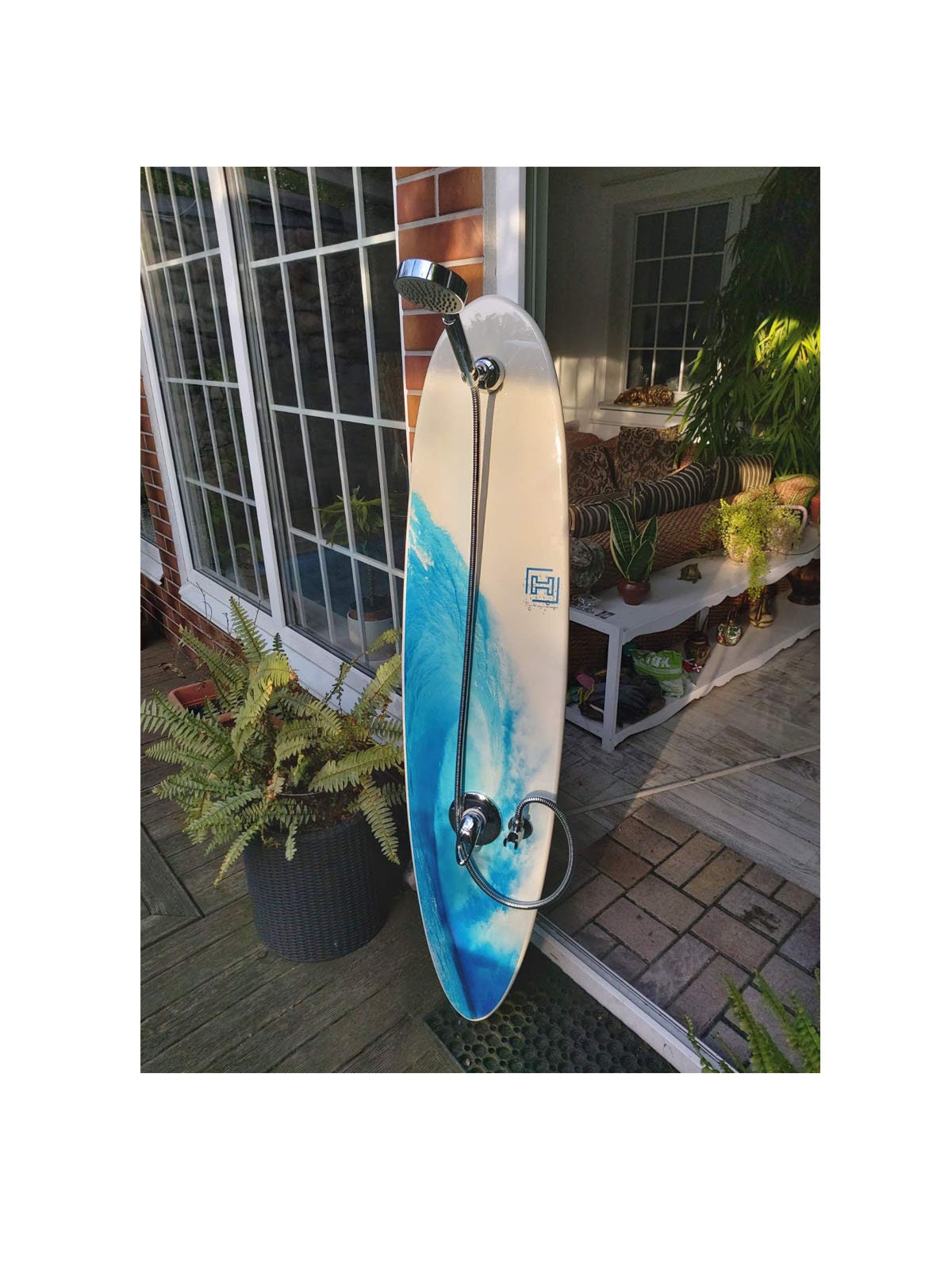 Surfboard panel you can use both indoors and outdoors - near the pool, in the garden, on the patio. The panel is supplied with ready technological holes for installation of shower equipment. There are many variants of shower equipment. From simple to complex. You specify where you want the holes to be made, and their sizes, and we fulfill the order. On the reverse side of the board we also make holes needed to mount the panel on the wall. The panel is made of special moisture-resistant plywood. It is protected against moisture. All the holes are sealed. If the protective coating of the board surface is not broken, the board can please you for many years. We do not include shower equipment in the set for several reasons. You choose what you like. Increasing the size of the package can be a nuisance. Because of this will increase the final price. In addition, the cost of shower kits is almost the same in different countries. Why else would you pay a second time for shipping? In addition, there may be other features of the shower installation, which is better to solve directly on the spot. So, we are ready. And you?