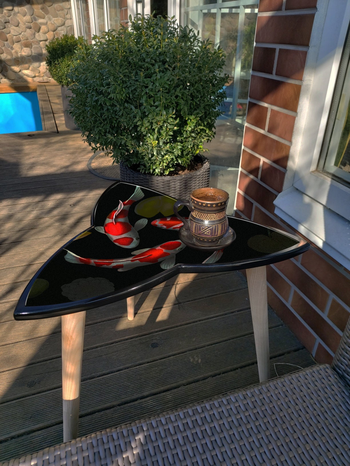 Surfboard Triangular Coffee Table with KOI Fish in Japan Style