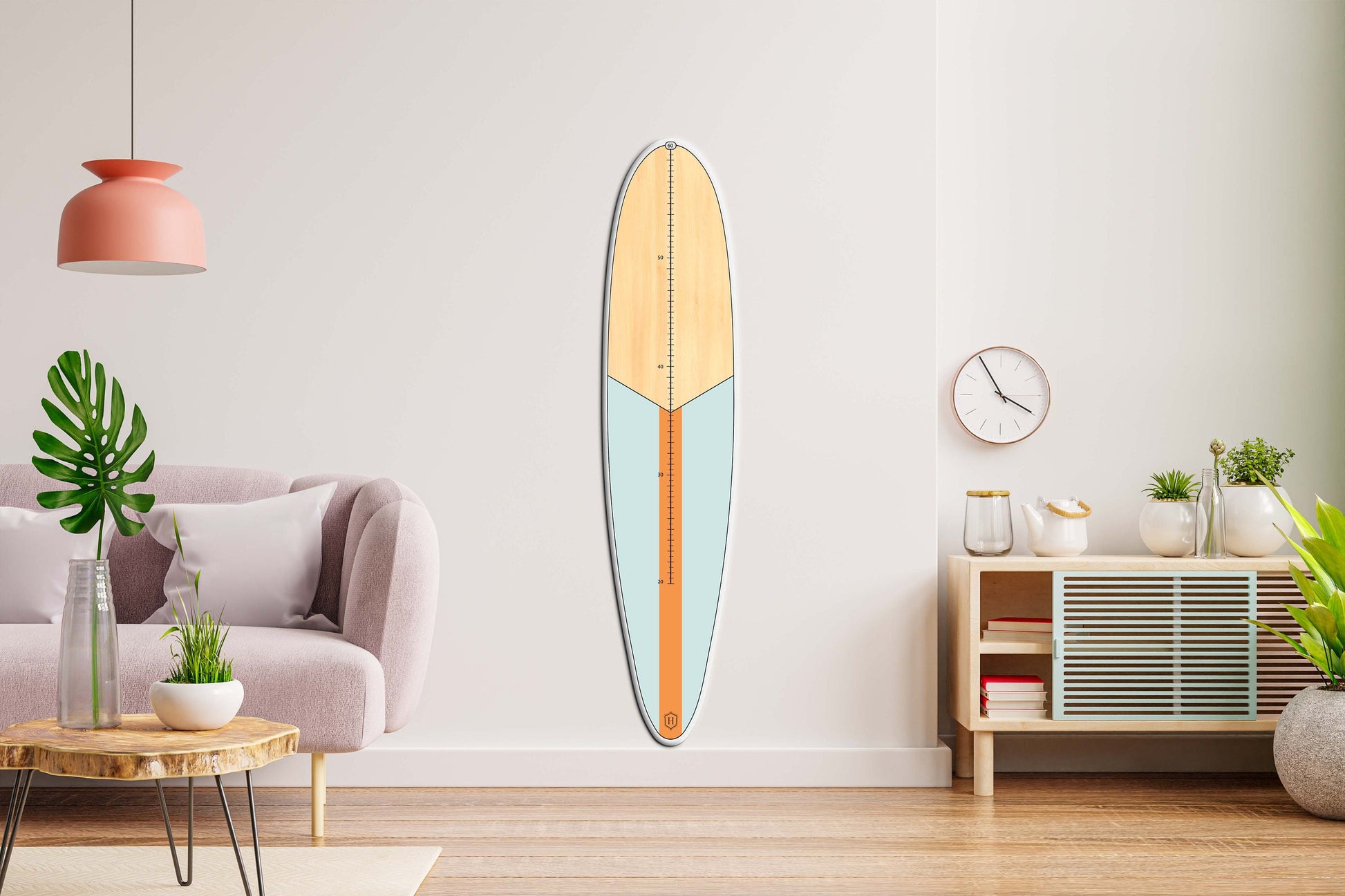 Welcome to our surfboard inspired wooden growth charts! If you're looking for a fun and unique way to keep track of your little one's progress, then you've come to the right place. Our charts are perfect for any nursery or child's room with a coastal theme. They make a great addition to any wall, and they're sure to bring a smile to your child's face each time they see it. Made from sturdy plywood and covered with a protective varnish, our growth chart is built to last. You can easily mark your child's height with a felt-tip pen, and the protection will keep those marks looking sharp. So go ahead and let your little one have some fun with their very own growth chart. Thanks for choosing ours!